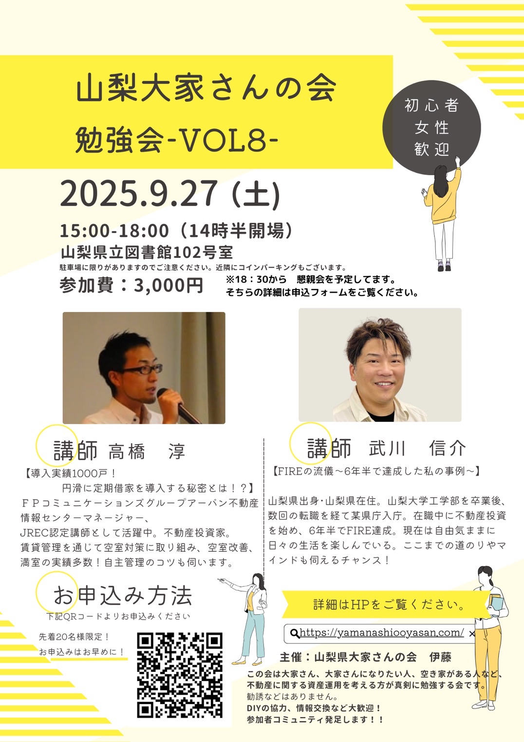 山梨県出身・山梨県在住。山梨大学工学部を卒業後、数回の転職を経て某県庁入庁。在職中に不動産投資を始め、6年半でFIRE達成。現在は自由気ままに日々の生活を楽しんでいる。